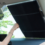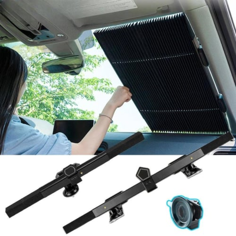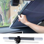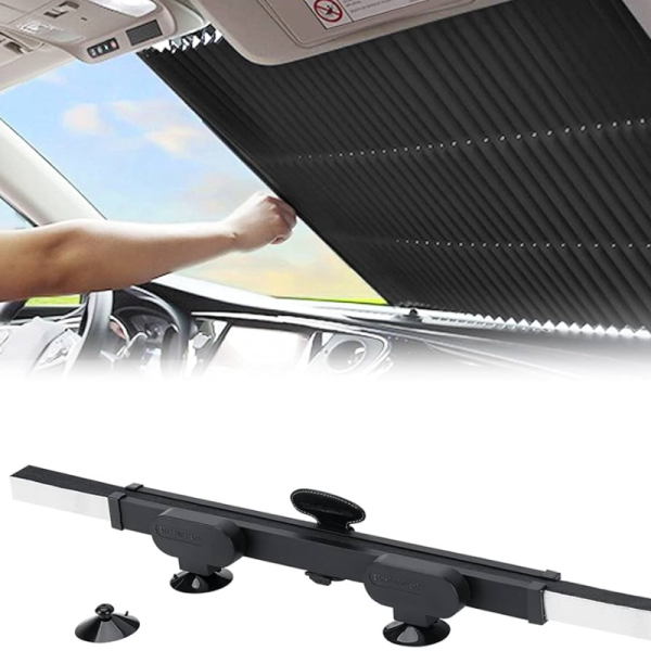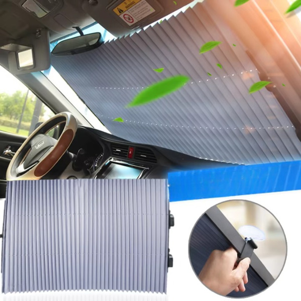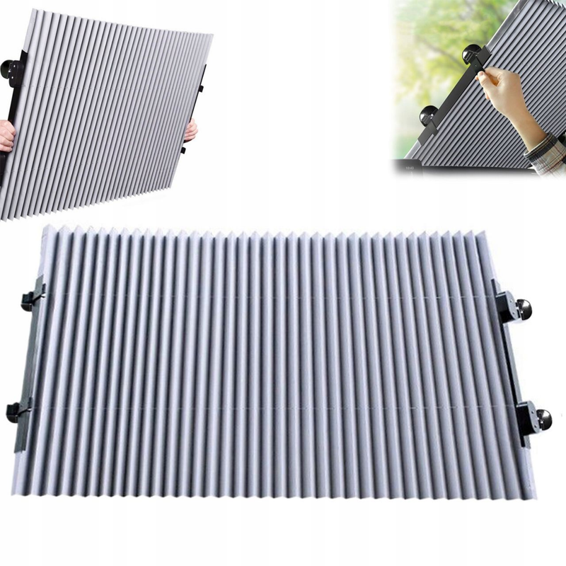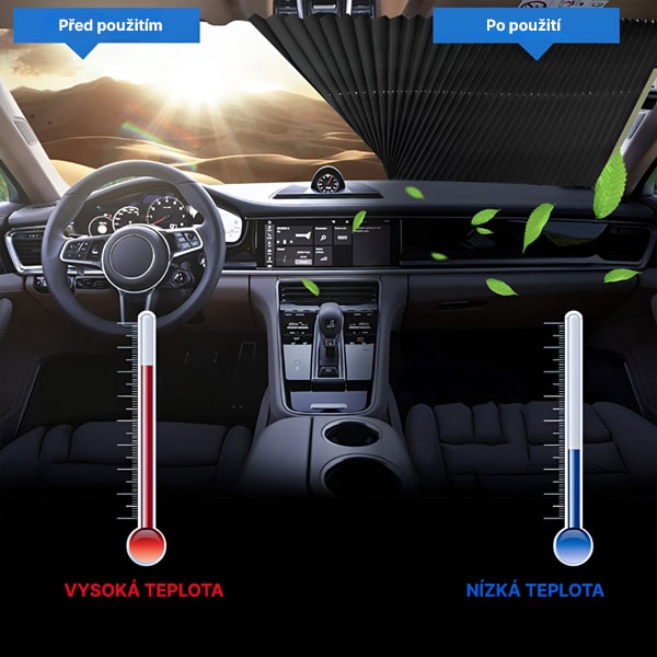 Abyste ji mohli začít používat, stačí zatáhnout za štítek a roztáhnout sluneční clonu přes čelní sklo. Materiál blokující UV záření odráží teplo a zabrání přehřátí vašeho vozu, palubní desky a volantu.