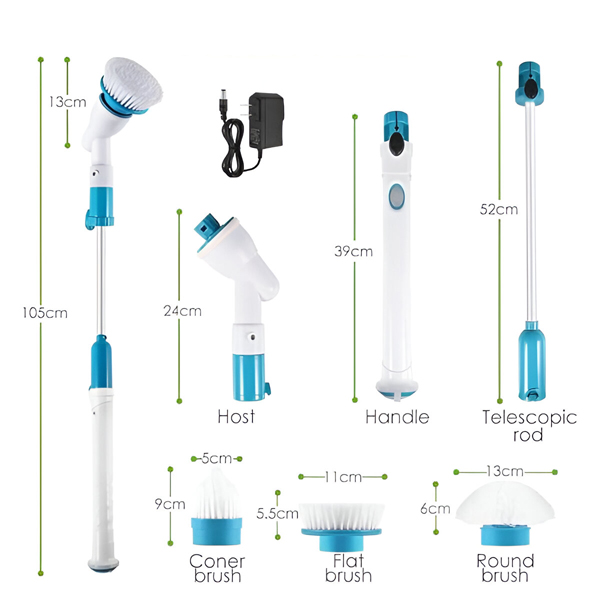 Kartáč se automaticky přizpůsobí nepřístupným rohům a hranám, různým podlahám, stěnám nebo sprchovému koutu.