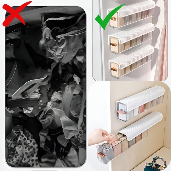 Udržuje drobnosti přehledně a snadno dostupně – spodní prádlo, ponožky, kancelářské potřeby, kabely i kuchyňské drobnosti.