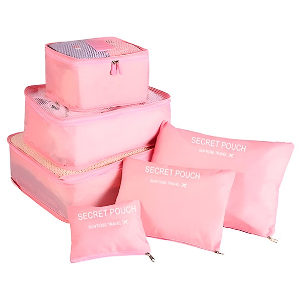Balení obsahuje:6 zavazadlových kvadratických futrálů (různých velikostí) v růžové barvě