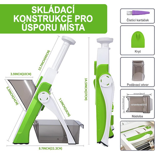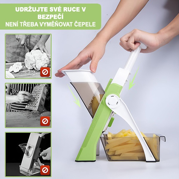 Díky svému víceúčelovému designu dokáže naše zařízení strouhat, krájet a řezat různé druhy ovoce a zeleniny.
