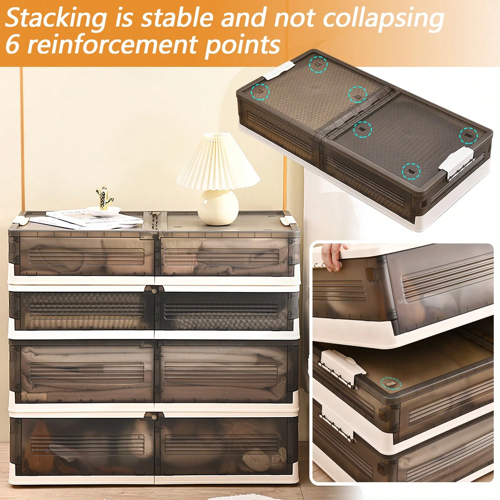 Boxy jsou vyrobeny ze zesíleného plastu, který odolává vlhkosti, neohýbá se a vydrží i větší zatížení. Ideální pro ložní prádlo, sezónní oblečení i hračky.